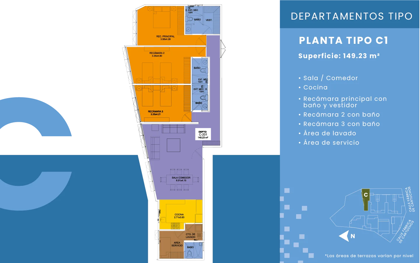 Este conjunto residencial consta 49 departamentos para estrenar con precios que van desde los $4,166,800 mxn hasta los $7,616,880 mxn y con diferentes configuraciones (ver sección de planos para ver opciones).